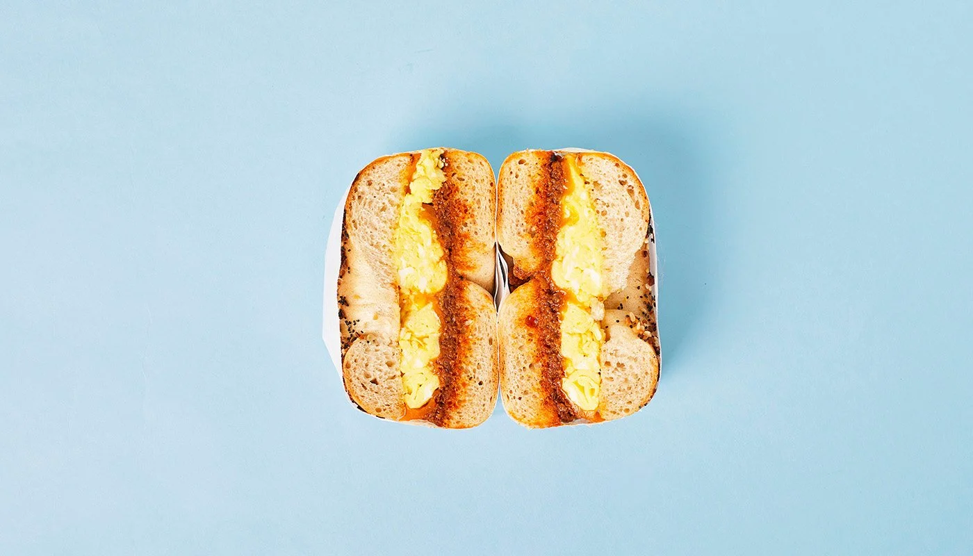 Choice of bagel with chorizo, scrambled eggs, and cheese.