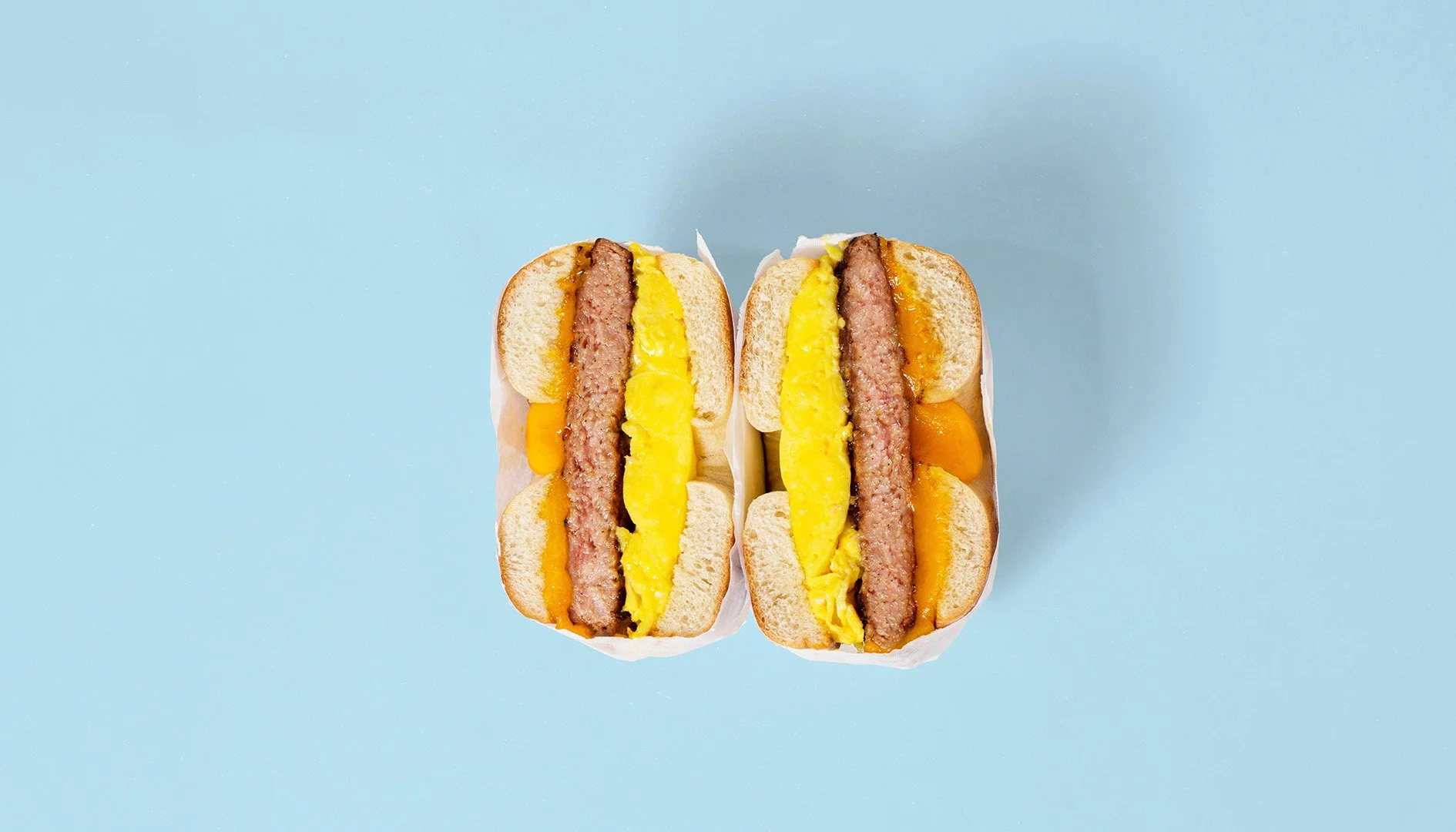 Choice of bagel with sausage, scrambled eggs, and cheese.